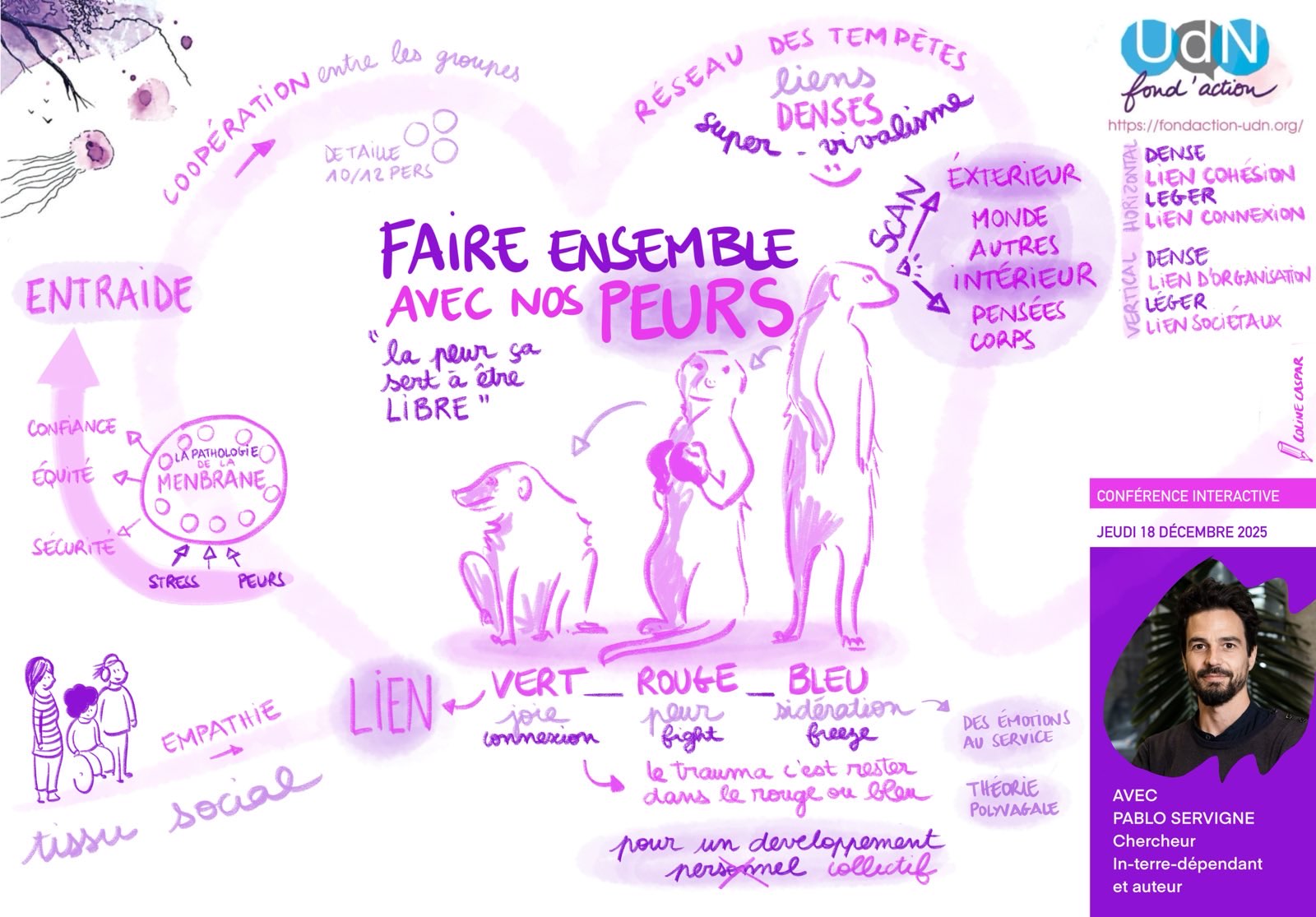Participer à une conférence interactive, c’est recevoir de l’Autre, c’est donner aussi avec ce qui est possible de donner, c’est douter peut-être, c’est essayer de sentir là où ça grince, là où ça fait du bien, là où ça a du sens, avec humour et humilité … C’est, en tous cas, comme dans nos façons de faire ensemble, esquisser un petit bout de chemin… ensemble !
